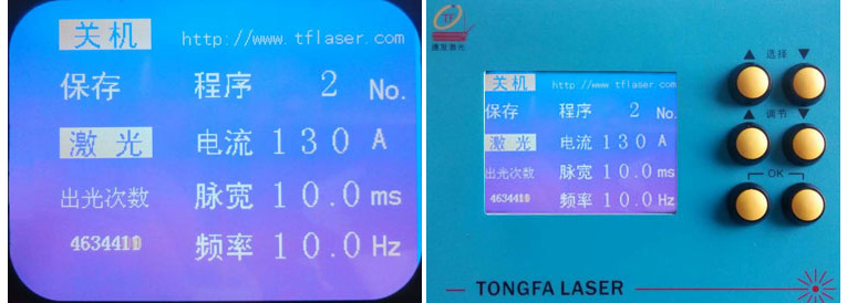 2、本首飾激光點焊機軟件可選擇中文或者英文界面,對不同加工位置選擇相應的激光焊接加工參數。由選擇按鈕移動光標到相應的參數位置,由調節按鈕調節參數的大小;